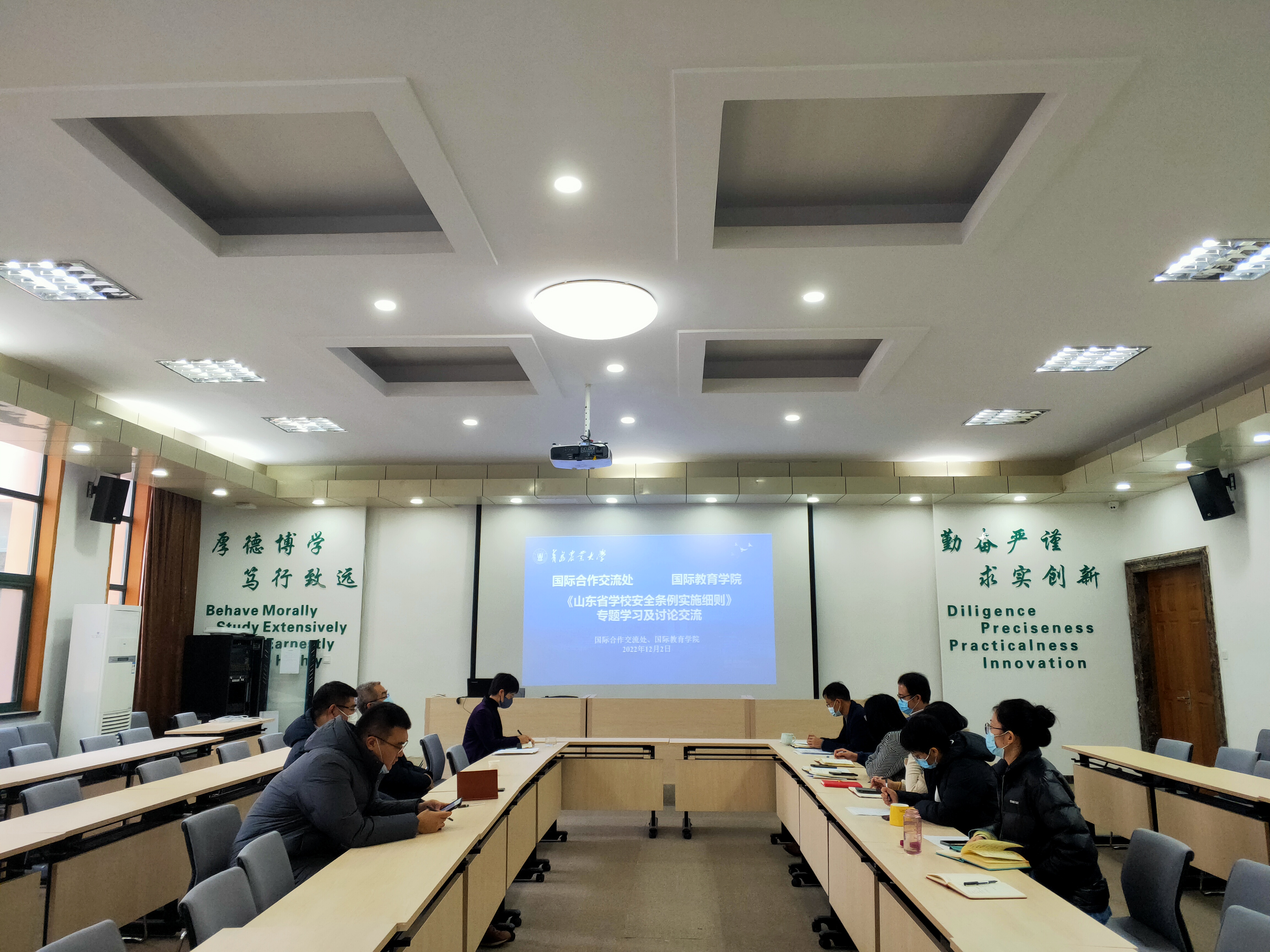 为进一步提高本单位教职工的安全意识,更好地做好校园安全工作,12月2日,太阳成集团tyc234cc、国际教育学院组织全体教职工对《山东省学校安全条例》实施细则进行了专题学习和讨论交流。会议由太阳成集团tyc234cc处长、国际教育学院副院长(主持工作)许颖主持。