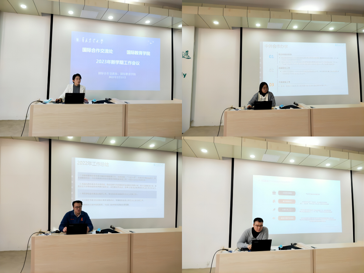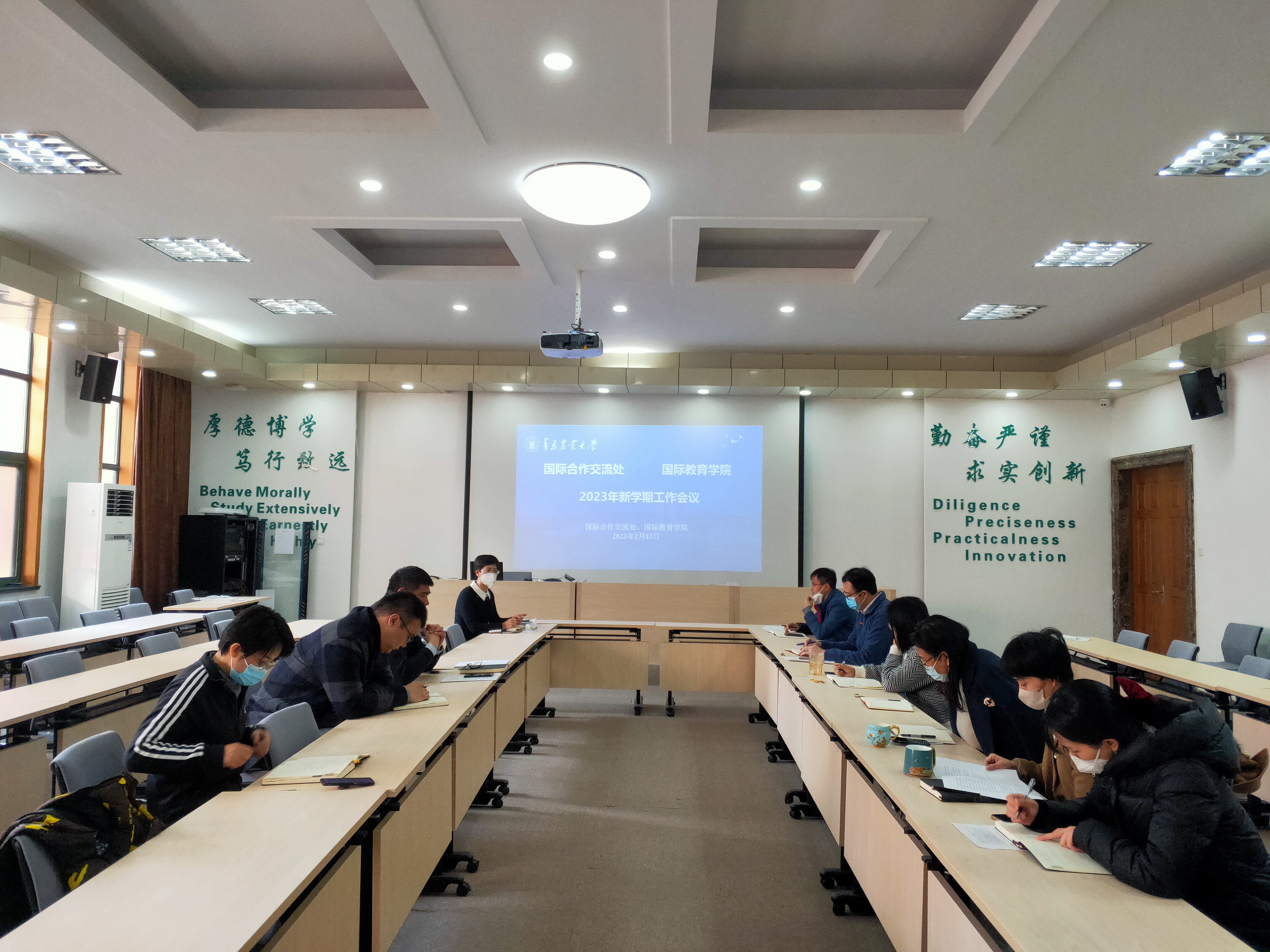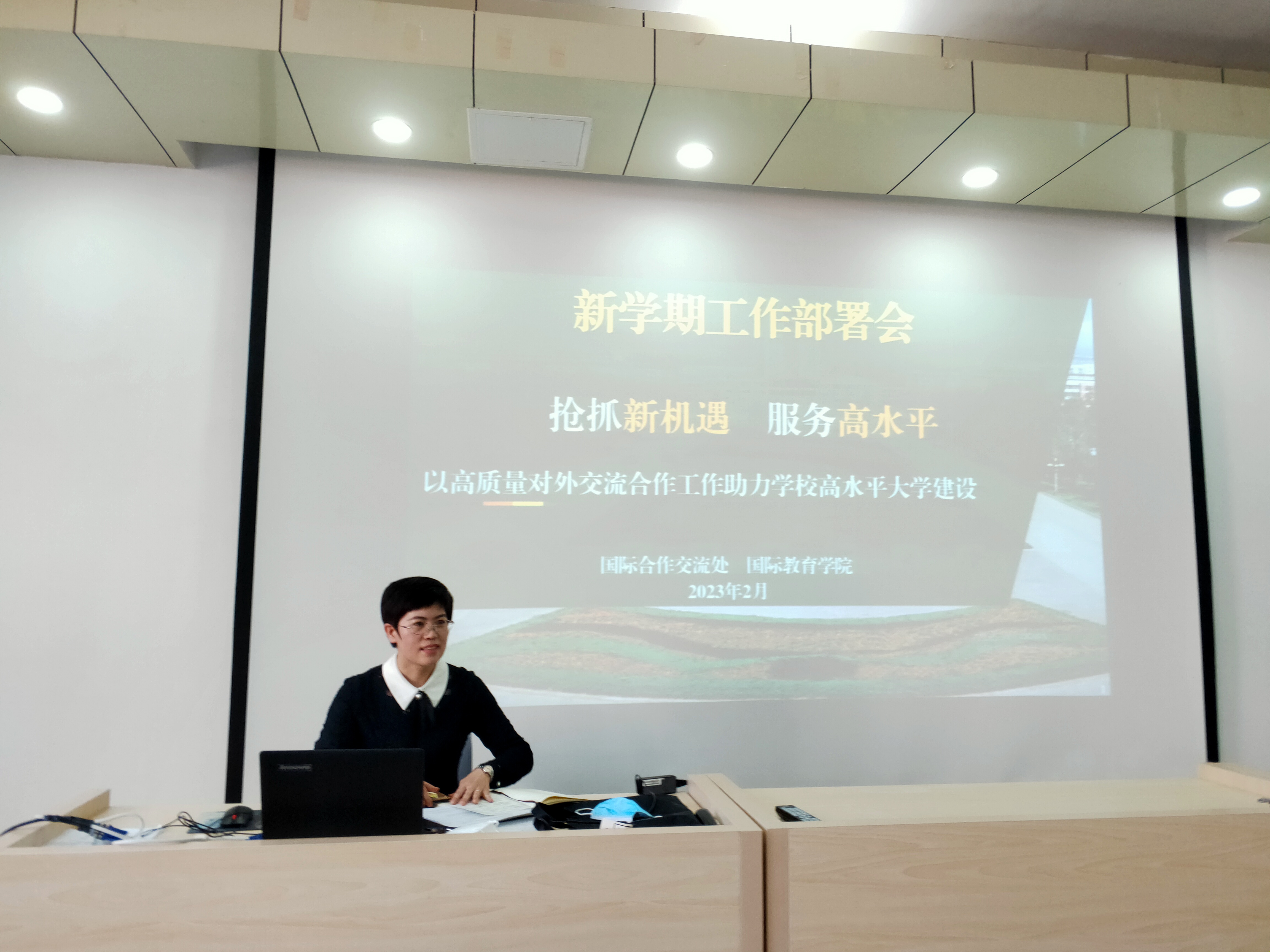 2月13日,太阳成集团tyc234cc、国际教育学院在专家楼115报告厅召开新学期工作部署会,会议由太阳成集团tyc234cc处长、国际教育学院副院长许颖主持。