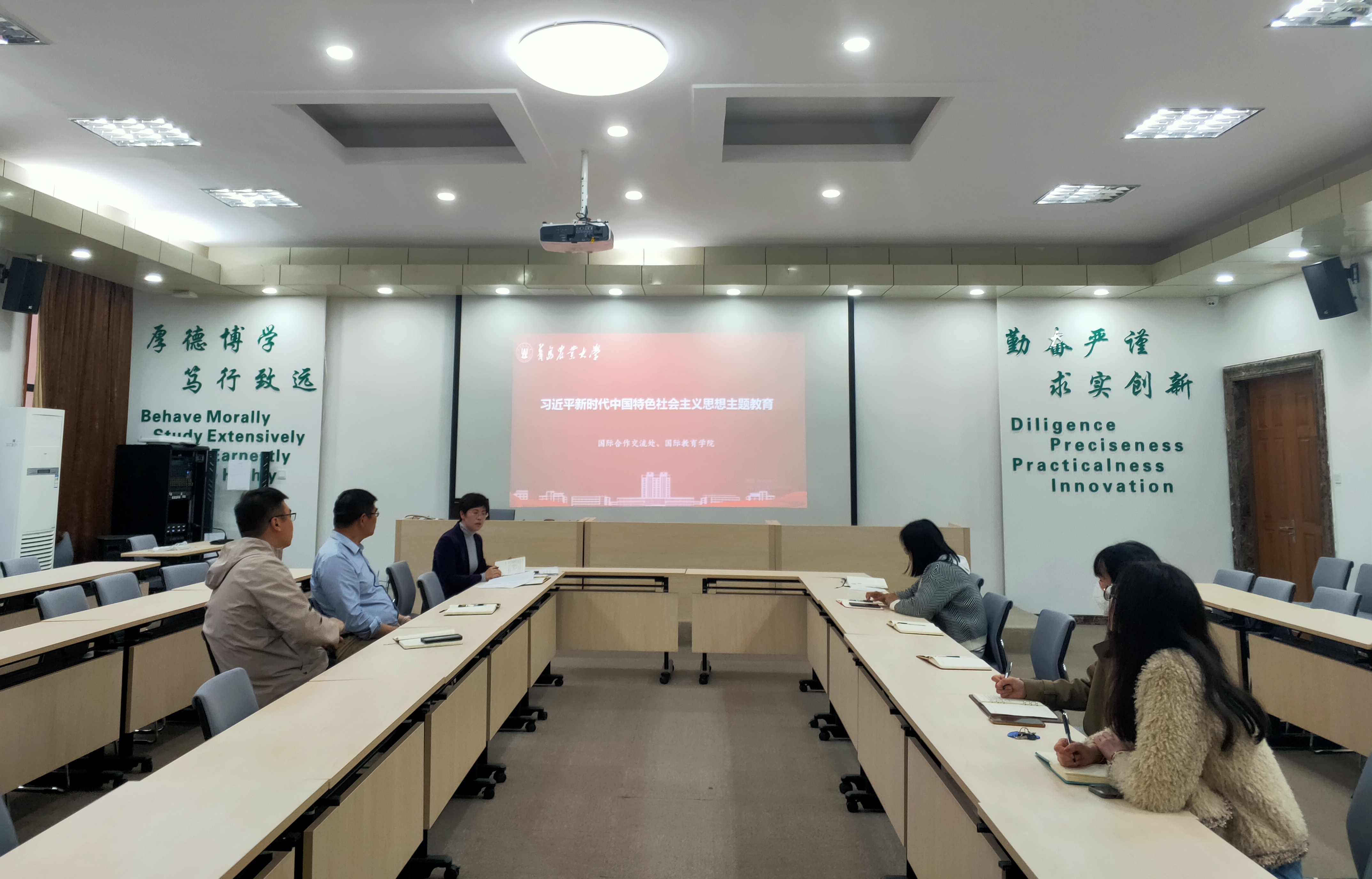 5月5日,国际交流合作处、国际教育学院开展学习贯彻习近平新时代中国特色社会主义思想主题教育理论学习会,会议由太阳成集团tyc234cc处长、国际教育学院副院长许颖主持,全体教职工参加会议。