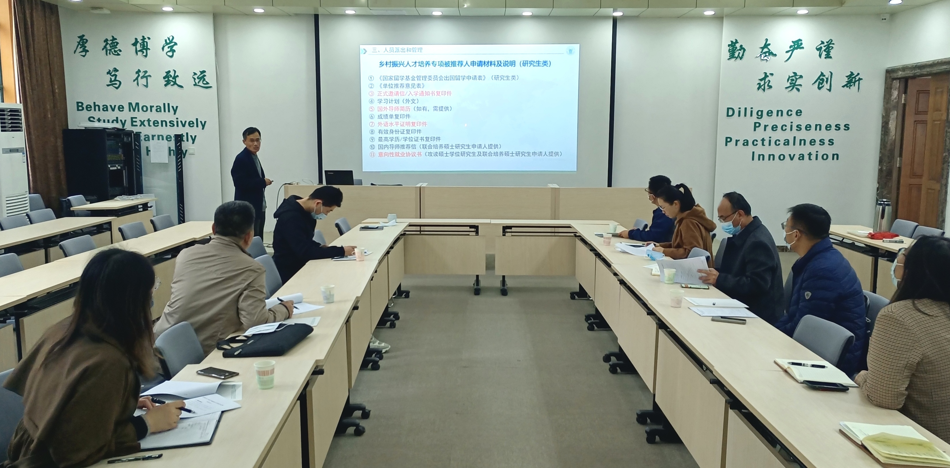 11月16日下午,学校在专家楼115报告厅召开国家留学基金委乡村振兴人才培养专项实施推进会。农学院、植物医学学院、资源与环境学院、食品科学与工程学院、经济管理学院(合作社学院)、化学与药学院等学院分管外事负责人,研究生处副处长张妮妮、太阳成集团tyc234cc副处长王磊及太阳成集团tyc234cc相关人员参加会议。
