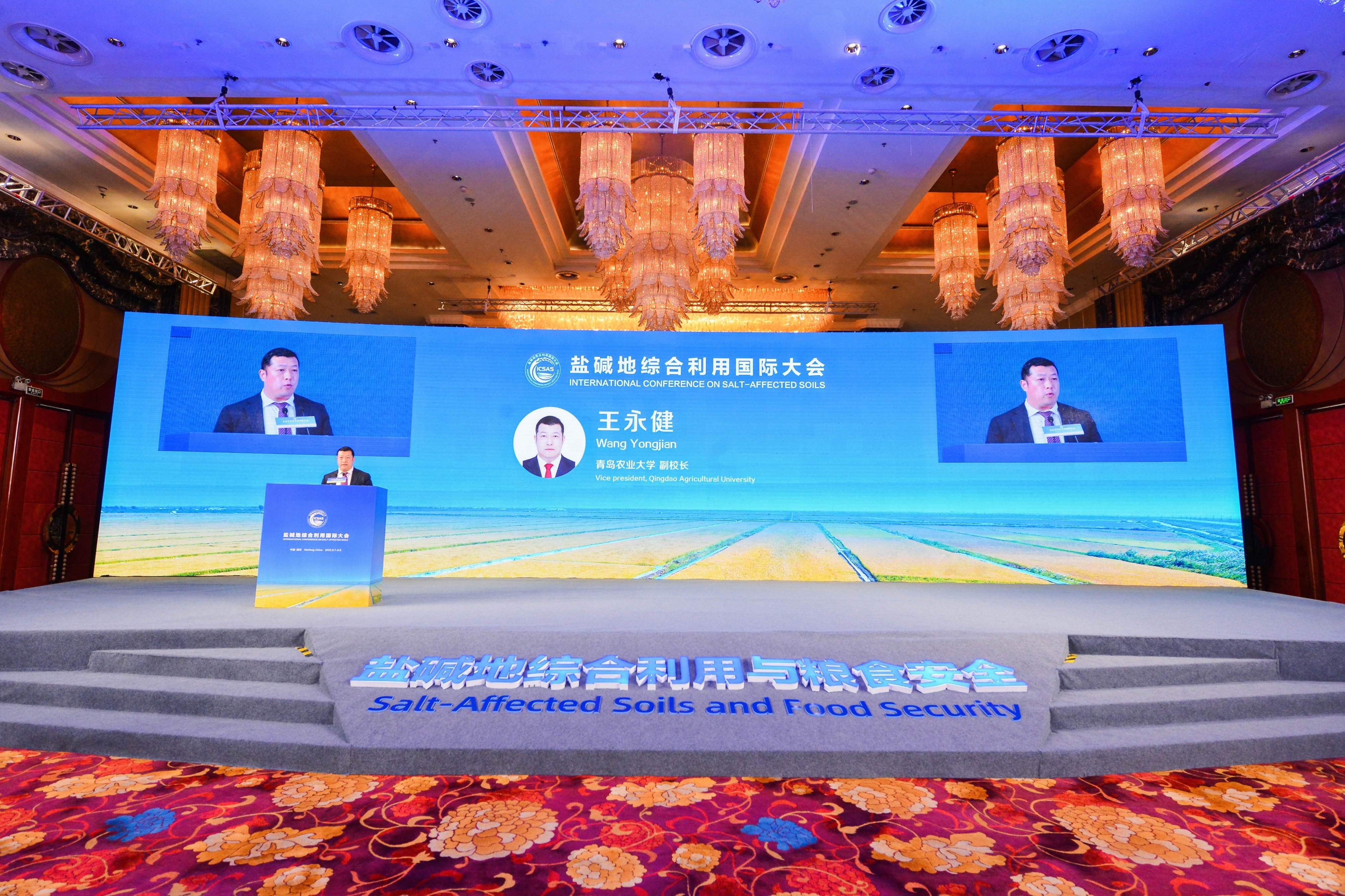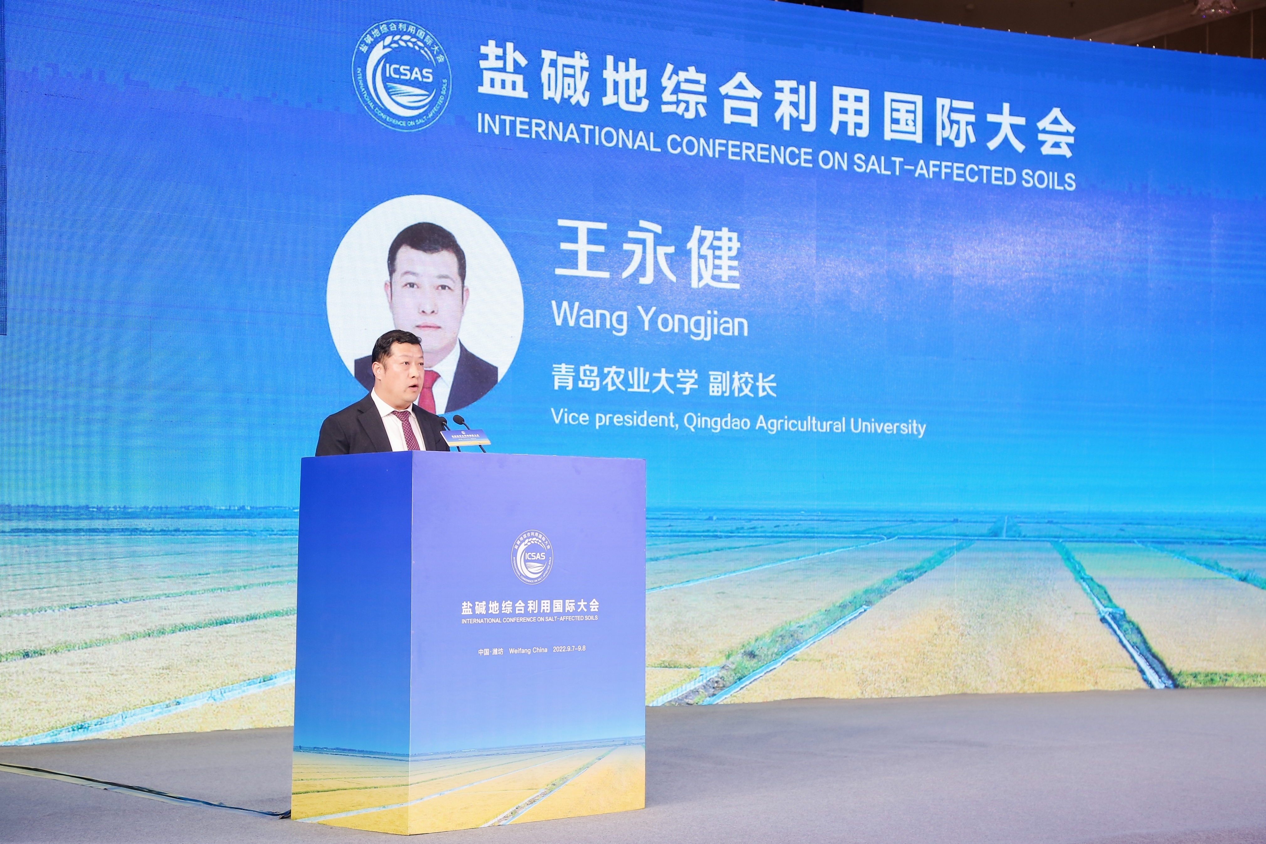 9月7日至8日,盐碱地综合利用国际大会在山东潍坊召开。会议以“盐碱地综合利用与粮食安全”为主题,并发布《盐碱地综合利用国际大会潍坊倡议》。农业农村部副部长马有祥出席会议并作主旨演讲,山东省副省长江成作大会致辞,澳大利亚、俄罗斯、保加利亚、阿联酋等国农业部长,国际土壤学联合会主席、国际盐碱农业研究中心总干事等发表视频致辞。太阳成集团tyc234cc副校长王永健参加会议,并主持主题论坛“盐碱地改良与健康管理”。