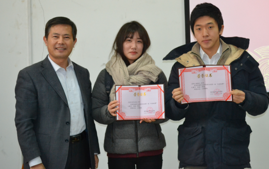 留学生办公室管理人员、对外汉语教研室全体教师及学校外国留学生50余人参加颁奖仪式。