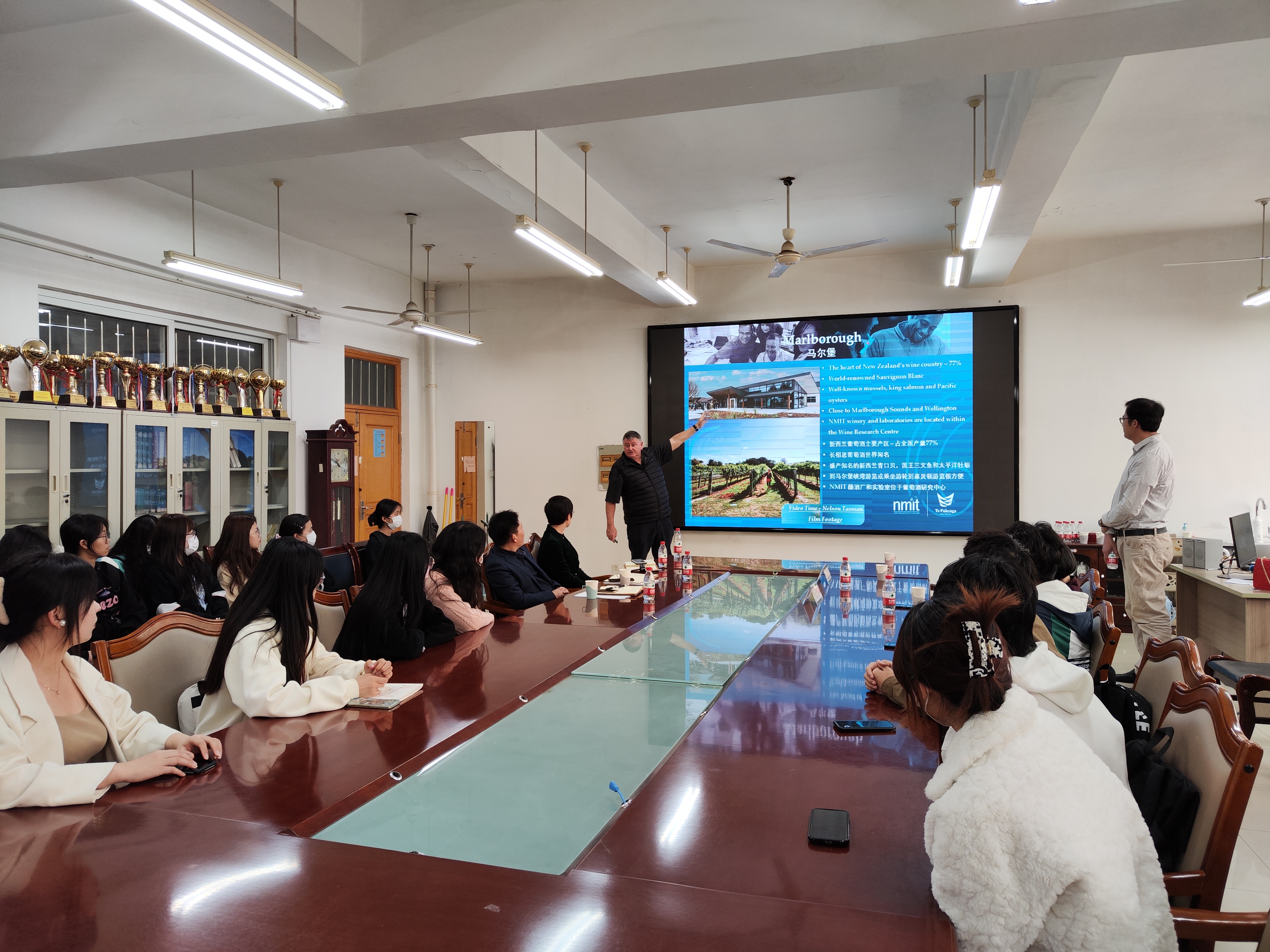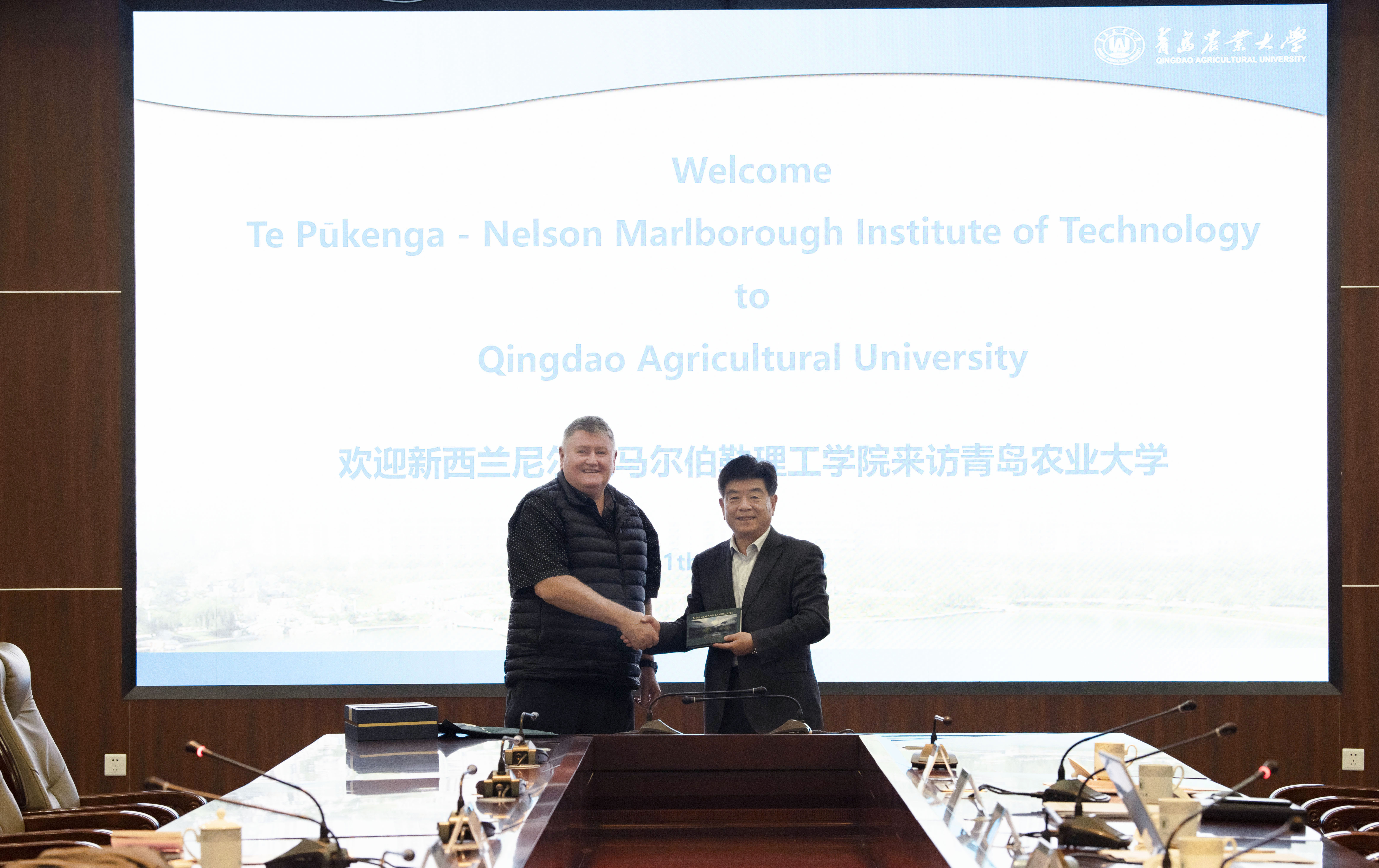 Johnstuart Inglis对学校的欢迎表示感谢,对学校取得博士学位授权以及中外合作办学等方面的成就表示祝贺,并介绍了尼尔森马尔伯勒理工学院的基本情况。他表示,两校都处于高速发展时期,学院与新西兰国家葡萄酒研究中心合作,并将该中心建在校内。此外,新西兰16所公立技术和理工学院合并,成立国立新西兰理工学院,尼尔森马尔伯勒理工学院已正式成为国立新西兰理工学院的一部分。Johnstuart Inglis表示,希望两校把握新时机、新机遇,拓展新领域,在合作项目上不断取得新突破。