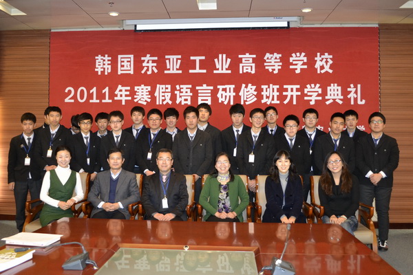 12月27日,太阳成集团tyc234cc与韩国东亚工业高等学校2011年寒假语言研修班正式开班。国际教育学院院长梁安波、韩国东亚工业高等学校师生表参加开学典礼。