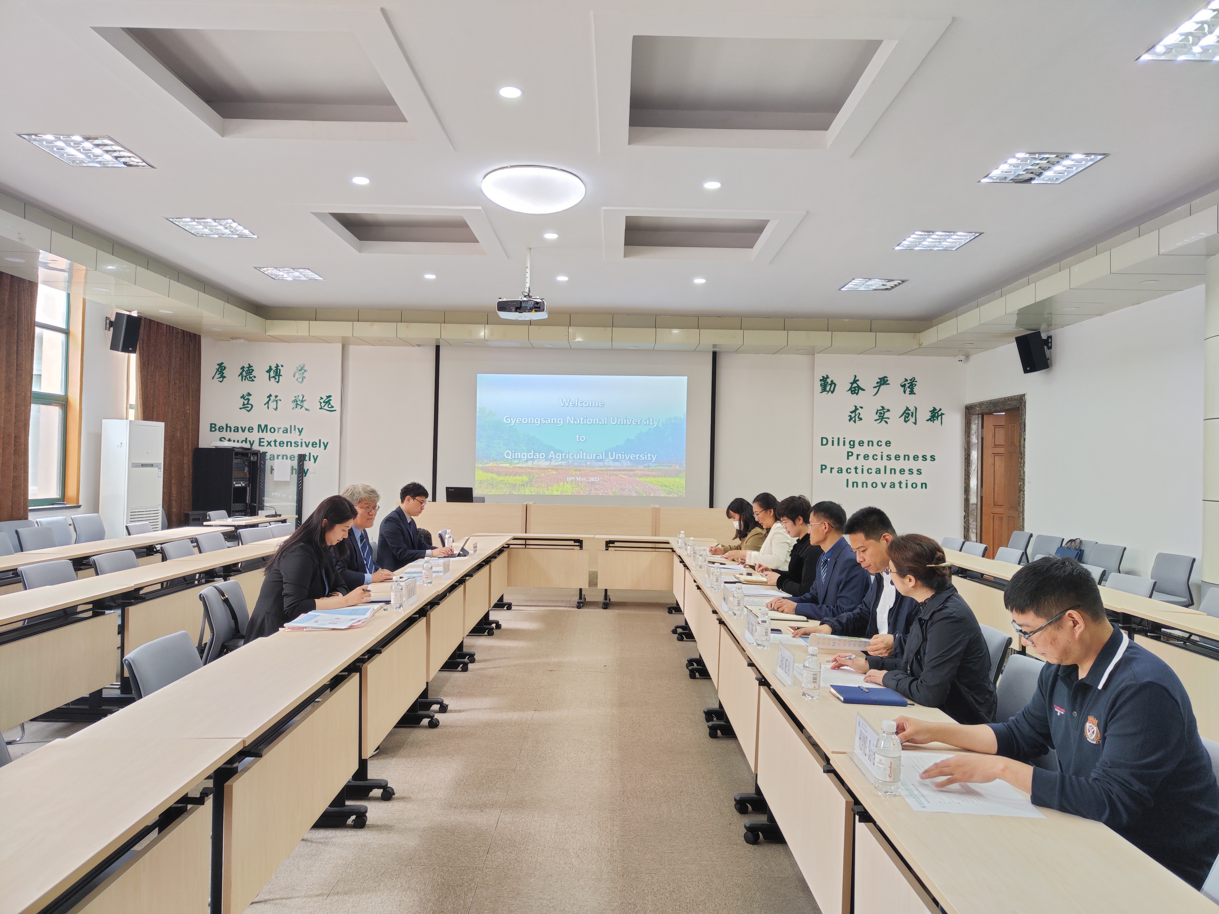 姜兌坰对我校的欢迎表示感谢,并回顾了两校自2007年建立友好关系以来在国际交流合作领域取得的成果,尤其是国际化学生人才培养、教师互访、学术科研领域合作等方面。他随后介绍了韩国国立庆尚大学的生命科学、航空机械工程、纳米材料三大特色化专业,以及学校国际交流的各项基本情况,并详细说明了国立庆尚大学针对友好院校开展的特别交换生、奖学金研究生等国际化人才培养项目。他表示,生命科学是国立庆尚大学的三大优势学科之一,希望继续与青岛农大生命科学学院加深师生互访交流,建立更加有利于双方发展的学术交流机制,取得更多令人欣喜的研究成果。