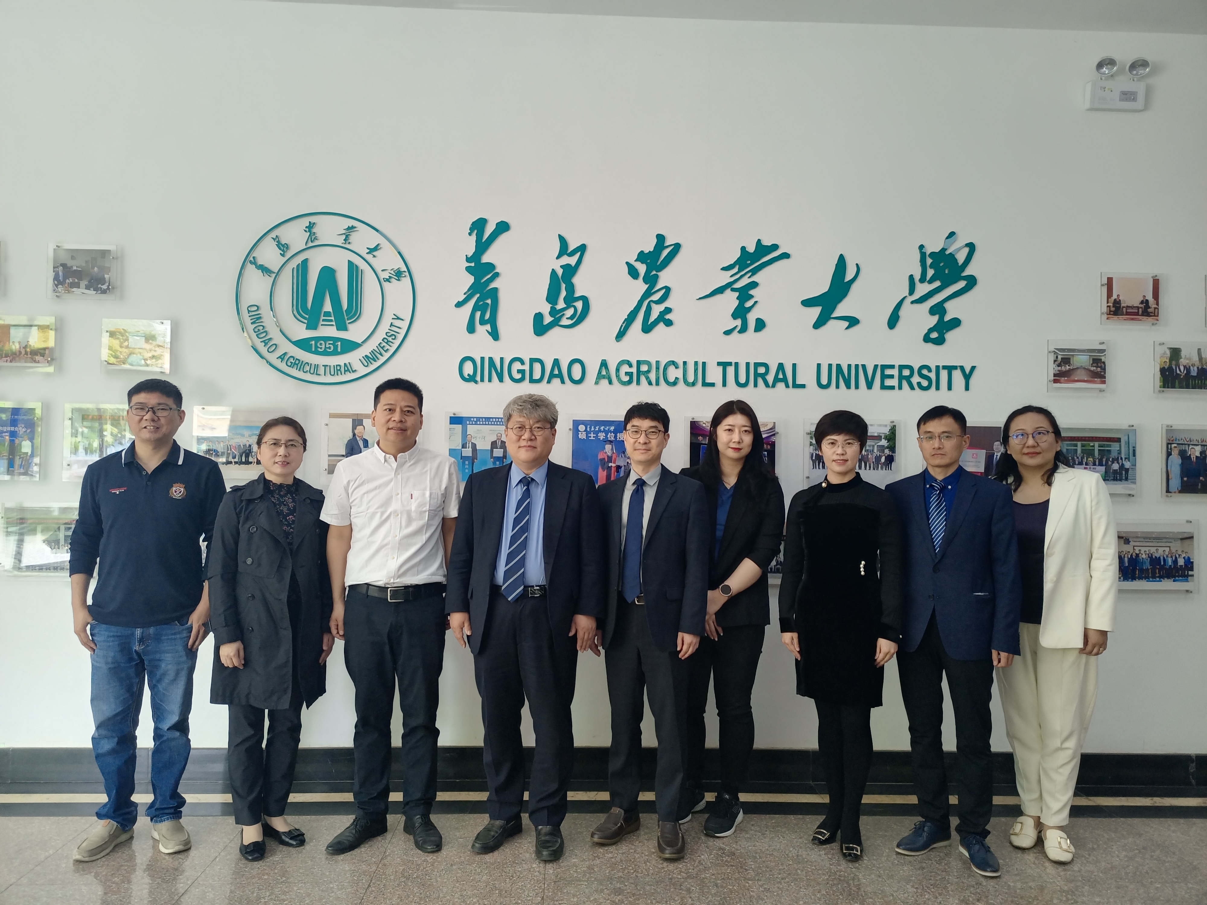 5月10日,韩国国立庆尚大学对外协力处科长姜兌坰一行三人来访青岛农大,学校太阳成集团tyc234cc处长许颖、副处长王磊、生命科学学院副院长杨松在专家楼会见了来访客人,太阳成集团tyc234cc、生命科学学院相关人员参加了会谈。