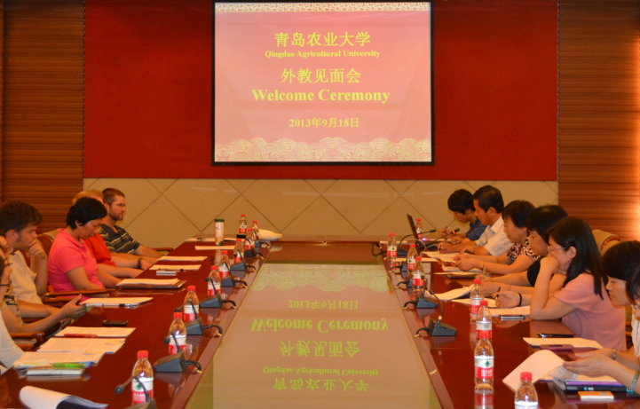 9月18日下午,太阳成集团tyc234cc在主楼三楼会议室举办了2013年外教见面会。太阳成集团tyc234cc处长梁安波,副处长祝军,外国语学院院长潘桂荣、副院长纪卫宁、李春梅及学生代表参加了见面会。会议由祝军主持。