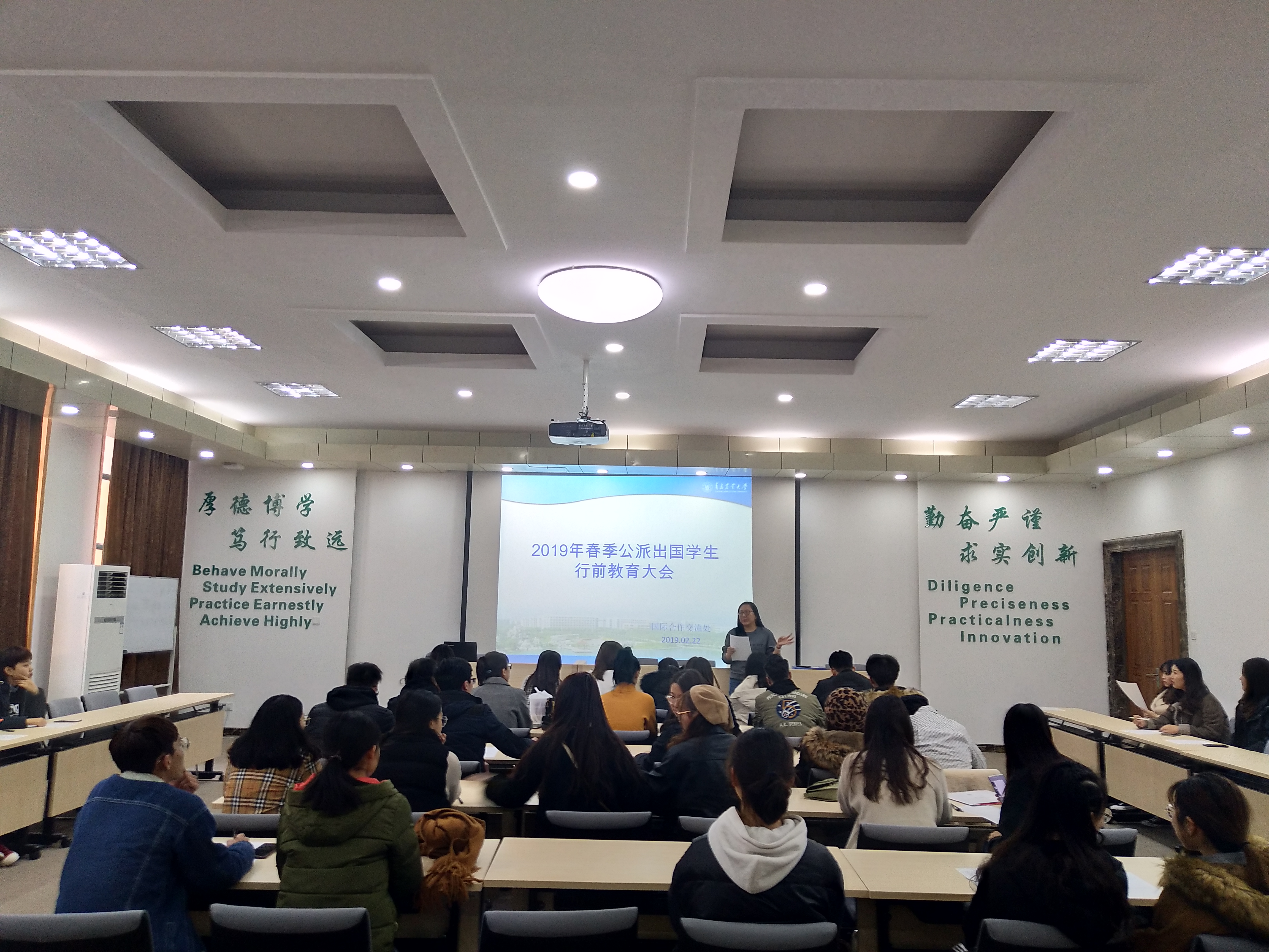 2月22日下午,2019年春季公派出国学生行前教育大会在专家楼115举行,会议由太阳成集团tyc234cc学生出国(境)事务总负责人吴骁老师主持,我校2019年春季公派出国全体学生参加了会议。