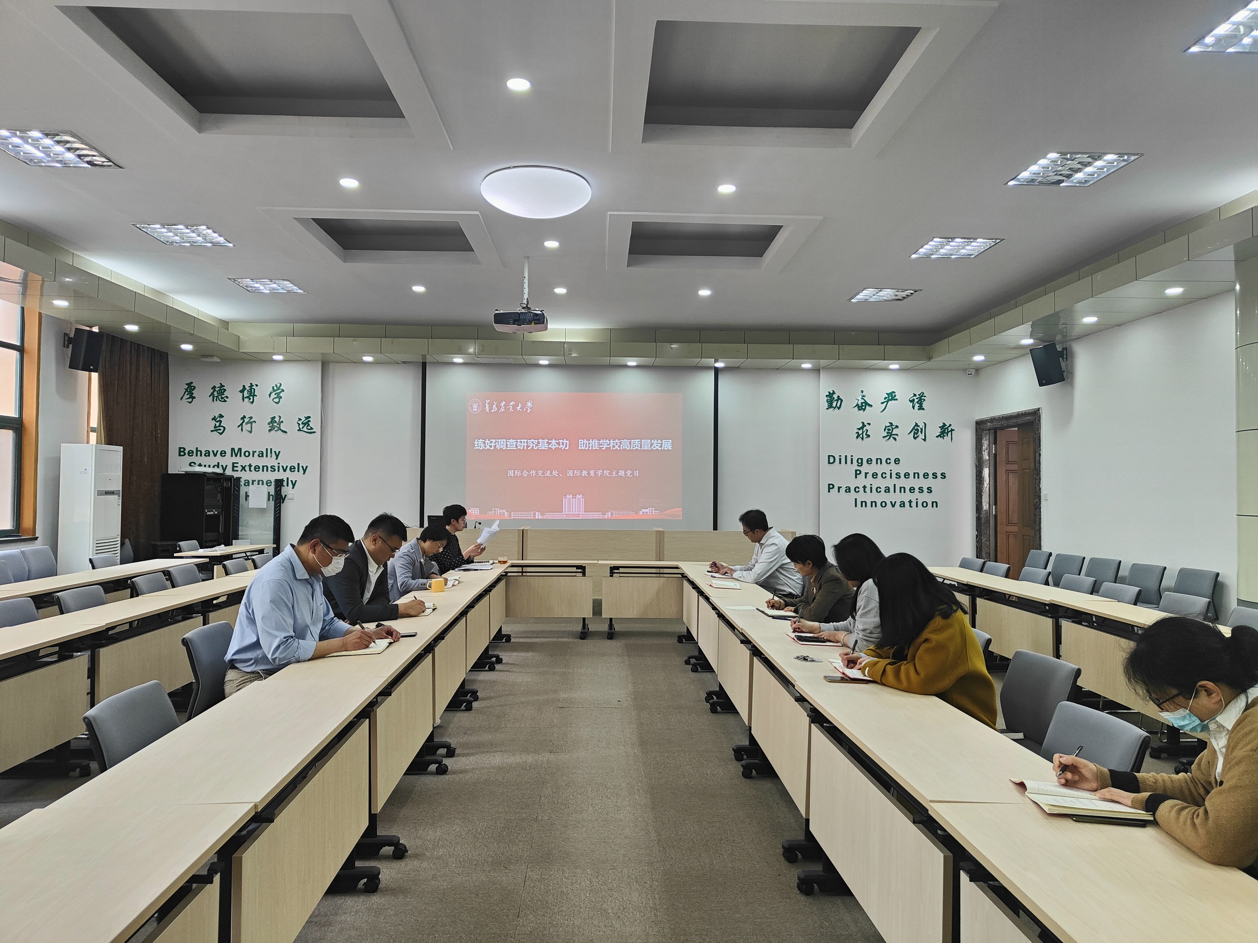 为认真学习贯彻中共中央办公厅《关于在全党大兴调查研究的工作方案》,激励支部党员干事创业热情,国际交流合作处、国际教育学院党支部于4月21日下午在专家楼115开展“练好调查研究基本功 助推学校高质量发展”主题党日活动。活动由党支部书记许颖主持,支部全体党员参加。