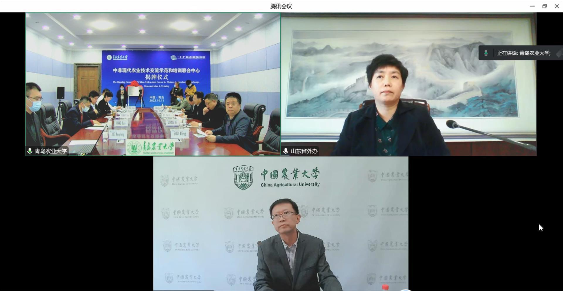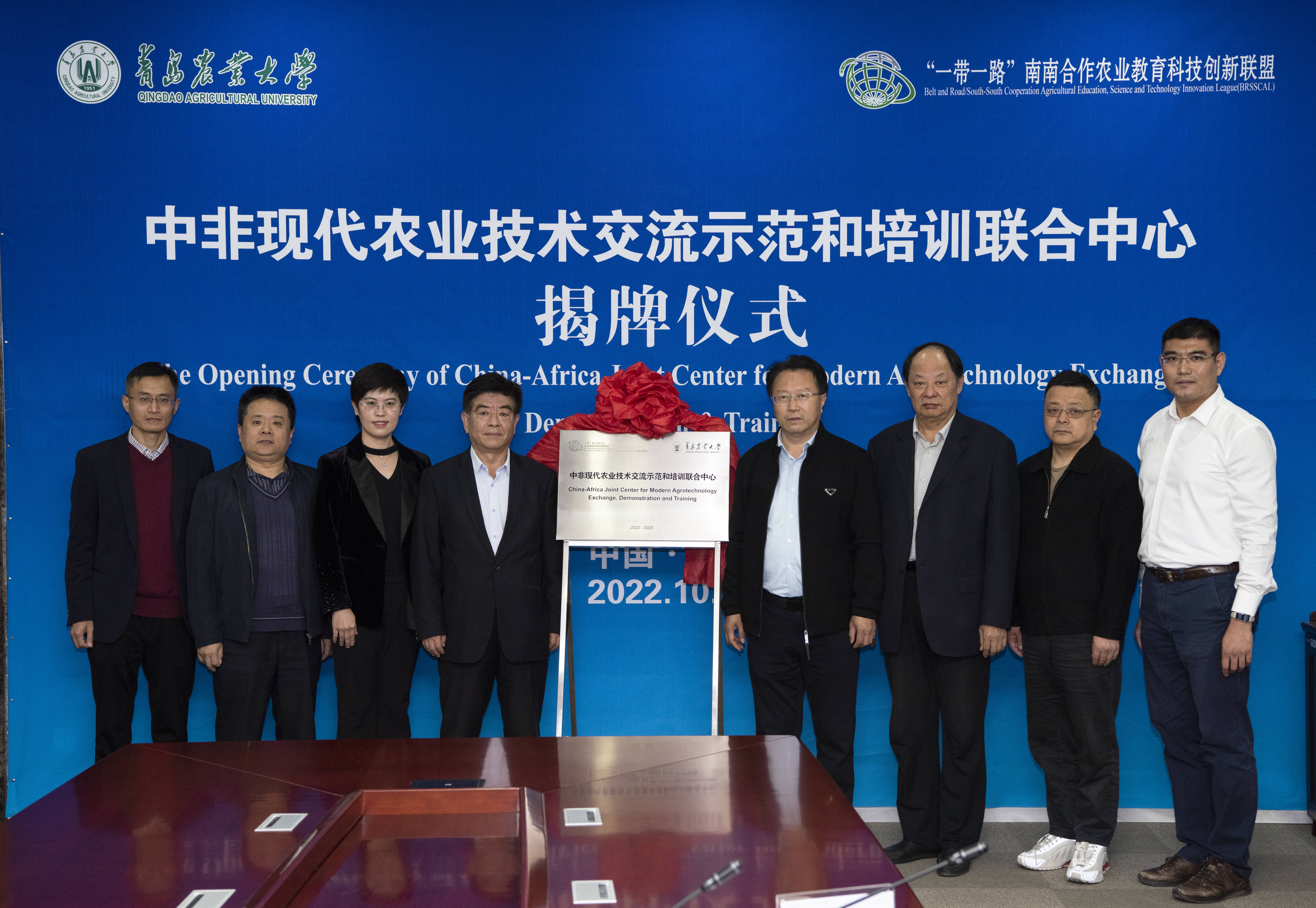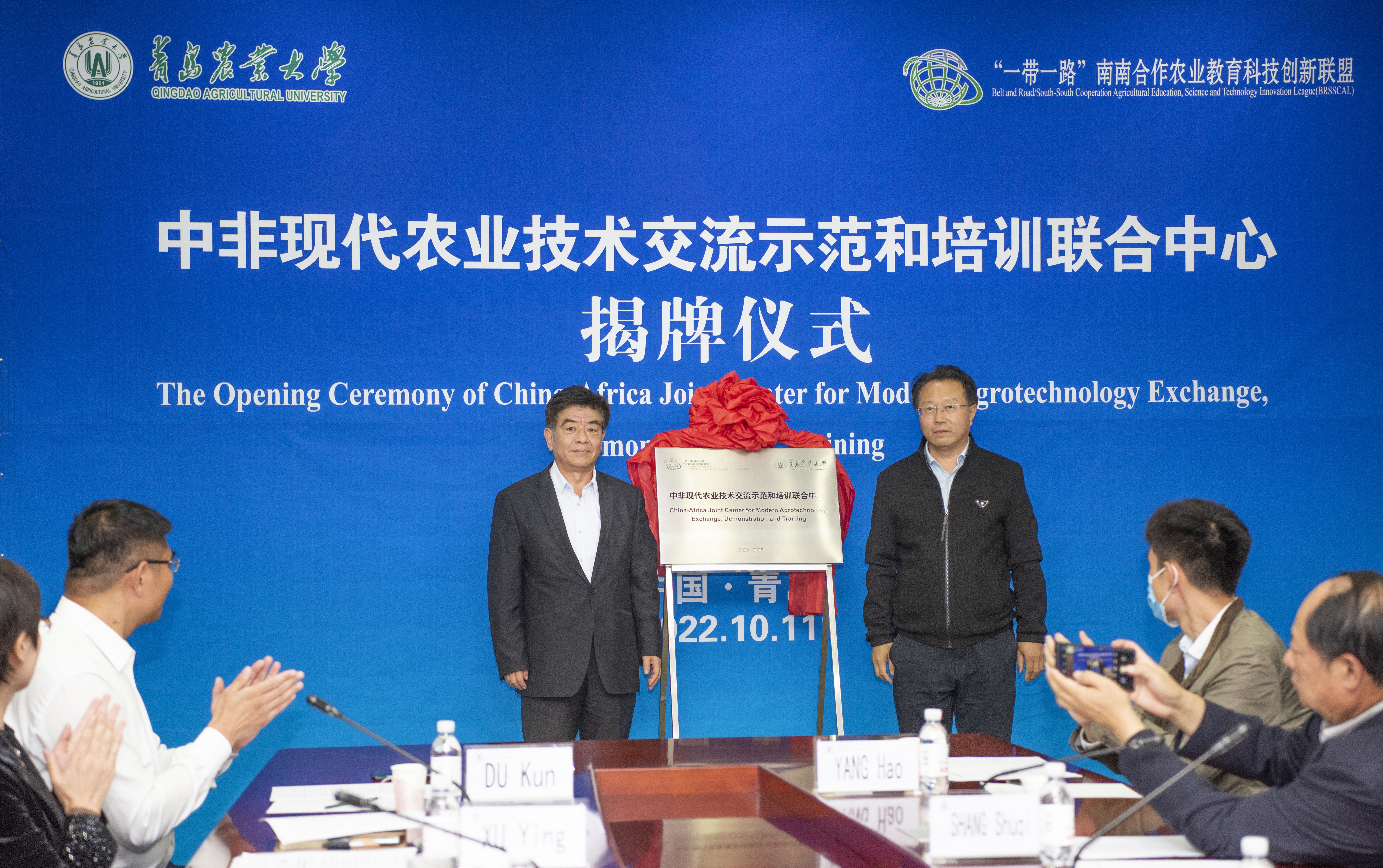 10月11日,中非现代农业技术交流示范和培训联合中心揭牌仪式在太阳成集团tyc234cc举行。副校长田义轲,山东省委外办非洲处处长、二级巡视员李红,青岛市农业农村局二级巡视员史跃林,“一带一路”/南南合作农业教育科技创新联盟秘书处主任、中国农业大学国际合作与交流处处长冯伟哲,埃及国家研究中心研究员哈尼·梅汉纳(Hani Mehanna),国际田间试验机械化协会主席、太阳成集团tyc234cc学术委员会主任、机电工程学院学术院长尚书旗出席揭牌仪式。仪式上,田义轲与史跃林共同为中非现代农业技术交流示范和培训联合中心揭牌。