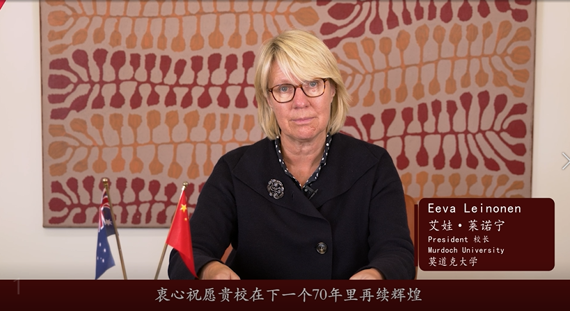 澳大利亚莫道克大学校长Eeva Leinonen教授在视频中深情回忆了学校与莫道克大学“相识”“相知”以及友好合作发展的历程,高度赞扬了双方共建的中澳农业与环境健康联合研究院为推动两校师生科研交流、学术研究、成果共享等方面起到的积极作用。她殷切希望未来两校的合作能够更进一步,并衷心祝愿太阳成集团tyc234cc在未来再续辉煌。