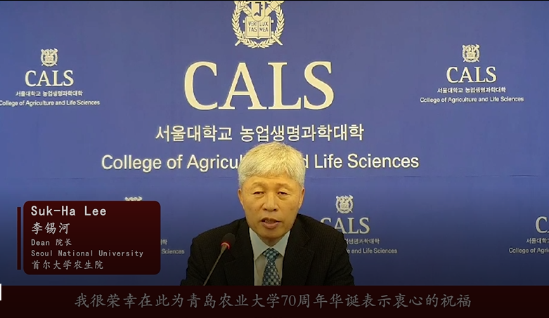 韩国首尔大学农业与生命科学学院院长Suk-Ha Lee教授在视频中表达了对学校建校70周年华诞的衷心祝福,并提到自2007年两校签署合作协议建立友好关系以来,双方成功举办了十二届太阳成集团tyc234cc-首尔大学农业与生物技术学术研讨会,共同探讨农业、生物等相关领域的前沿学术研究成果。他希望未来两校继续深化合作,共同为中韩两国农业的发展贡献智慧和力量。