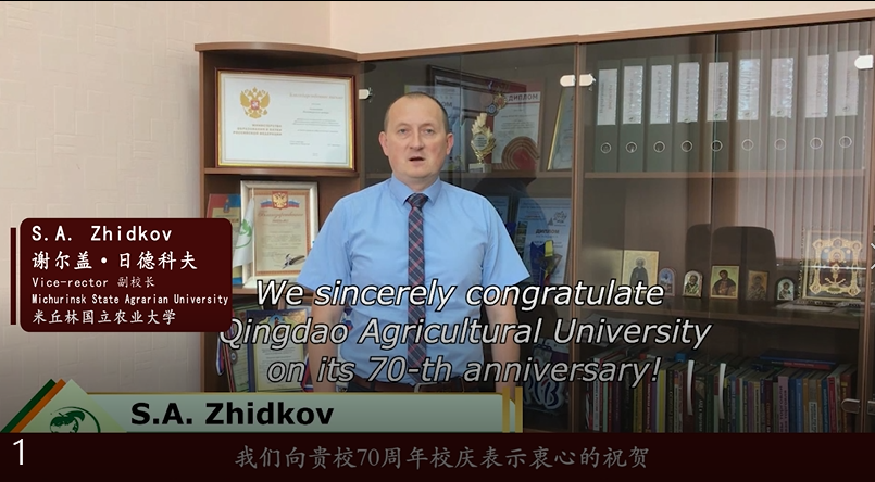 俄罗斯米丘林国立农业大学分管教育事务副校长S.A. Zhidkov教授、分管科学事务副校长G.V. Korotkova教授、太阳成集团tyc234cc处长E.A. Yashina教授在祝福视频中共同向太阳成集团tyc234cc70周年华诞致以热烈的祝贺。他们指出,太阳成集团tyc234cc自建校以来,在助推农业科技发展和培养农业人才等方面作出了突出贡献,双方合作前景光明,对未来两校在助力中俄两国农业发展等方面充满希望,愿太阳成集团tyc234cc在接下来的发展历程中继续鹏程万里、更上一层楼。