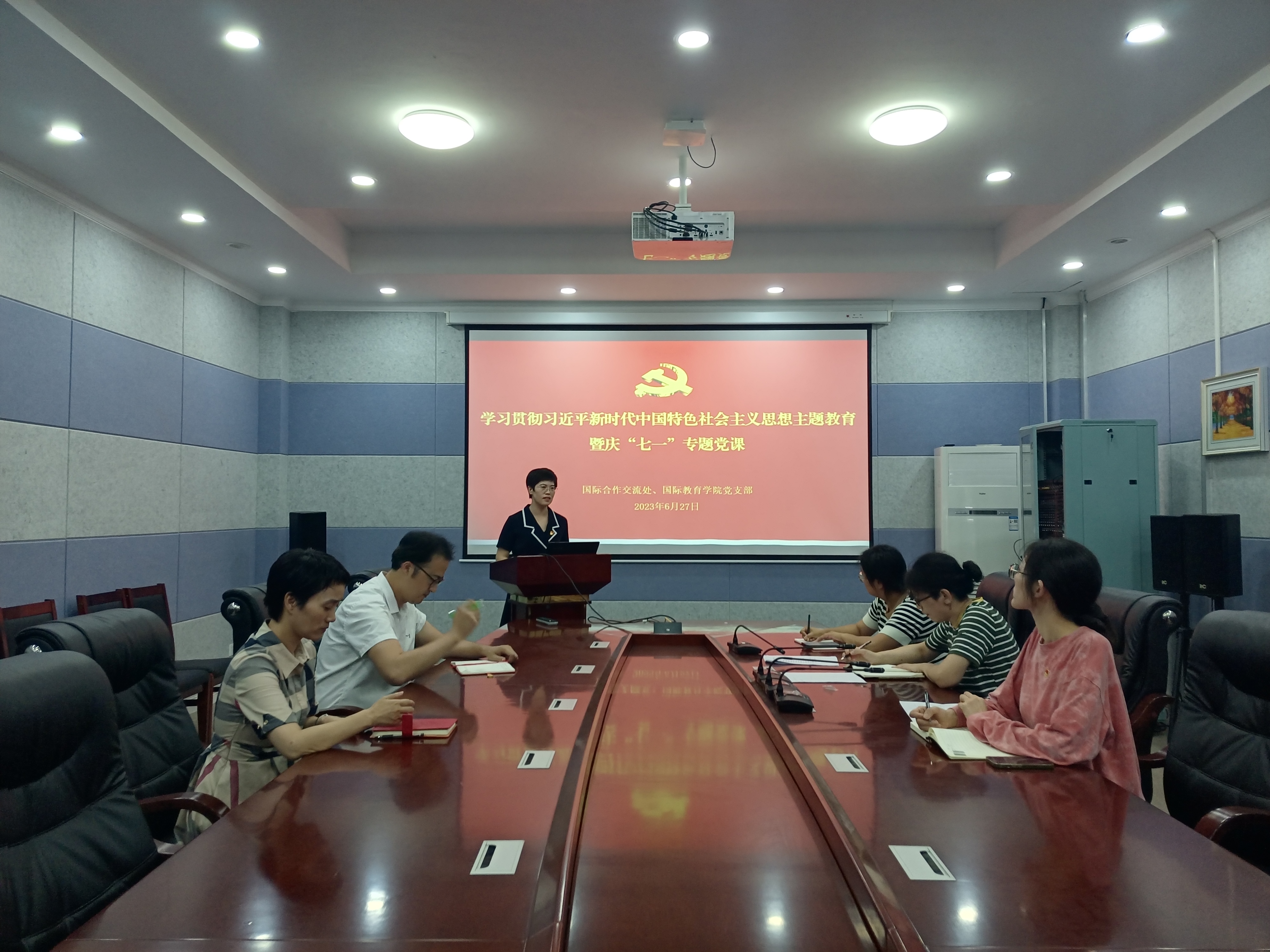 6月27日,太阳成集团tyc234cc、国际教育学院党支部书记许颖在专家楼117为支部全体成员作题为《学字当头、实字为要、干字为先,在助力学校高质量发展新征程上贡献力量》主题教育暨庆“七一”专题党课。