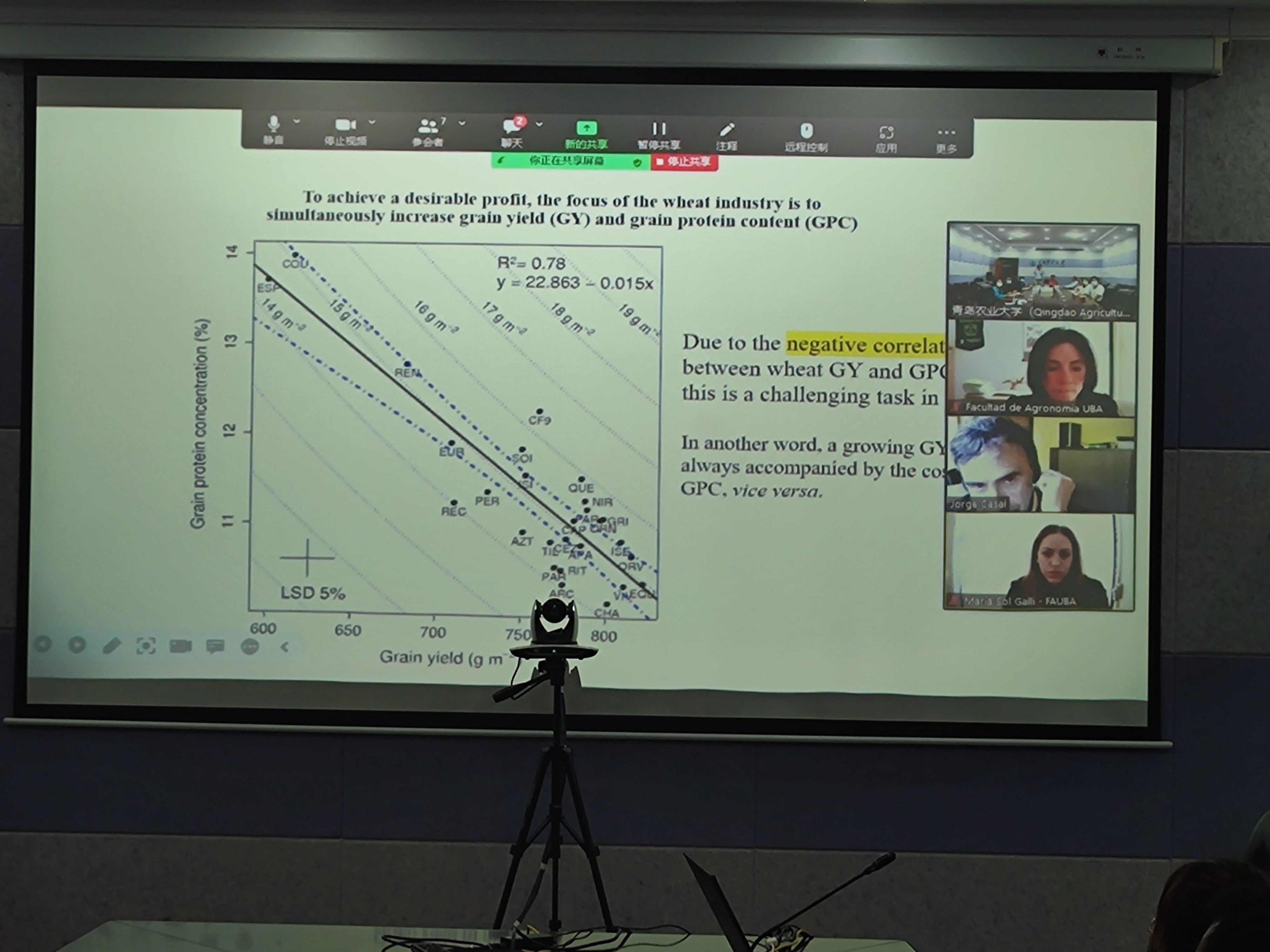 近日,学校在专家楼117会议室与阿根廷布宜诺斯艾利斯大学召开线上学术交流会。农学院院长马武军教授、姜雯教授、吴广霞副教授,布宜诺斯艾利斯大学农学院教师Juan Ignacio Cagnola、Daniel Miralles、Gustavo Maddonni、合作与双边关系主管María Sol Galli等参加会议。