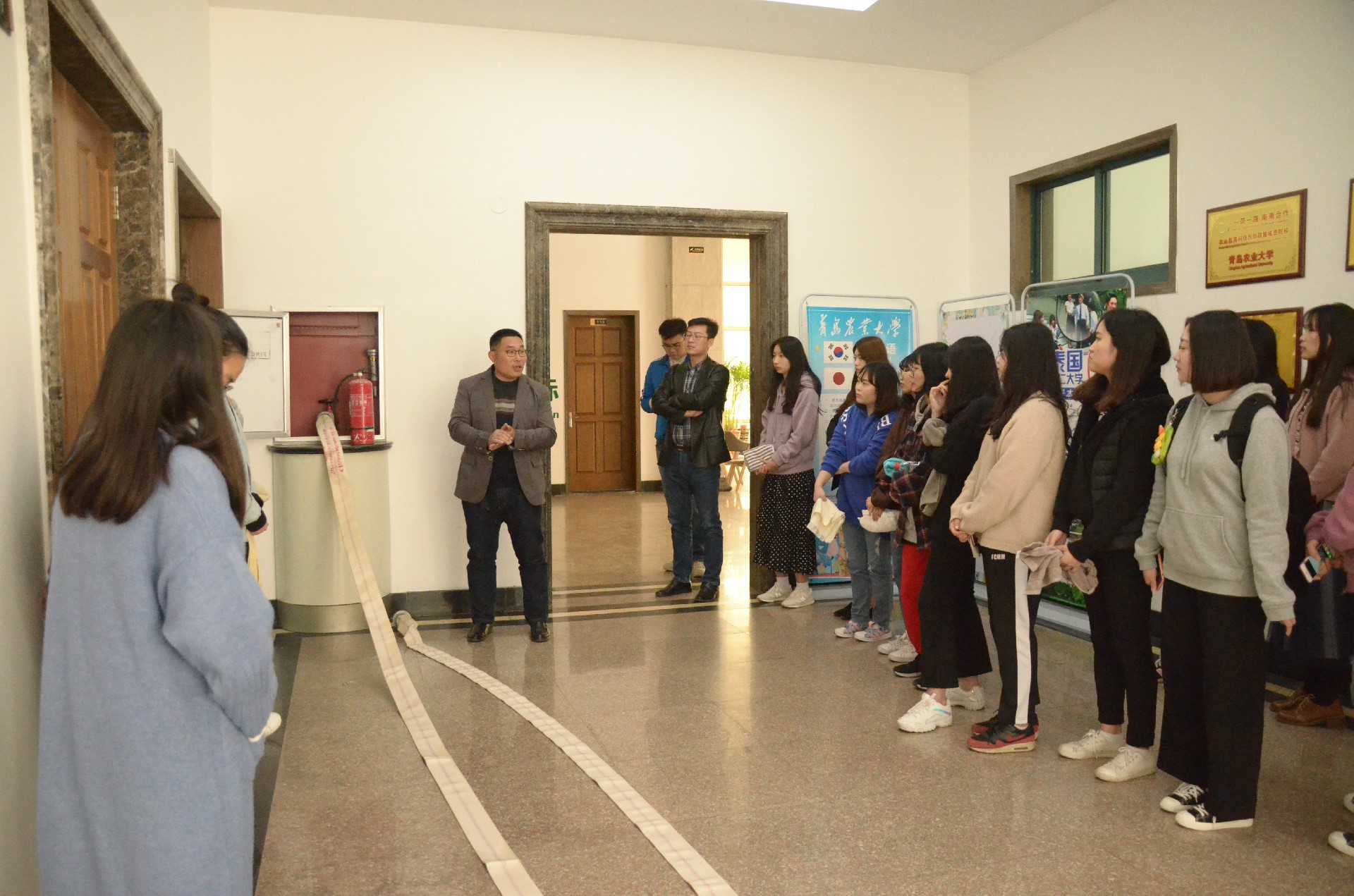 春季是火灾事故的高发季节,程致远介绍了春季防火常识,并对灭火器、消防栓、消防水带的正确使用方法进行了详细讲解与示范。他强调,在日常生活中要熟悉紧急疏散线路,突发火灾事故时要做到沉着冷静,确保能够快速、高效、有序地进行疏散、撤离。随后所有参加活动人员进行了模拟火灾场景演练,并在专家楼外进行了灭火器实际操作演练。