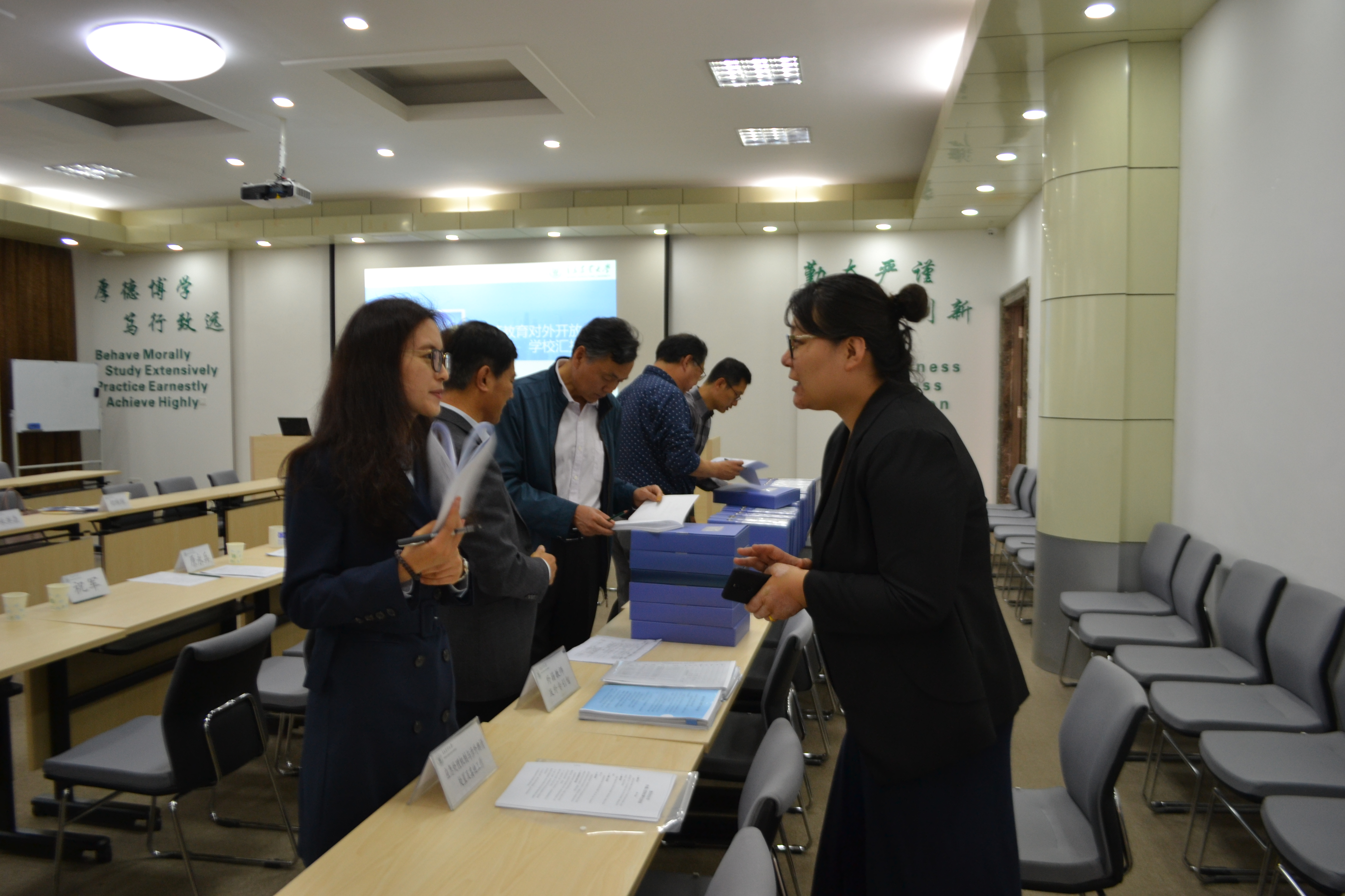 会后,调研组一行查阅了学校对外开放管理工作相关文件材料,并调研了留学生宿舍和教室等相关场地。
