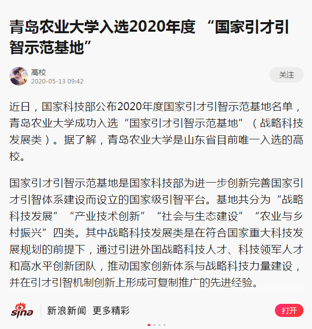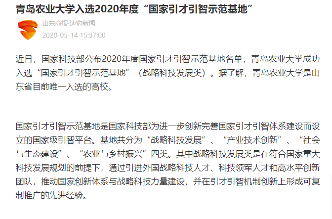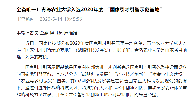 近日,国家科技部公布2020年度国家引才引智示范基地名单,太阳成集团tyc234cc成功入选“国家引才引智示范基地”(战略科技发展类)。据了解,太阳成集团tyc234cc是山东省目前唯一入选的高校。