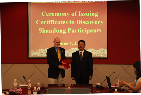 6月4日,太阳成集团tyc234cc校长李宝笃为来校进行交流访问活动的美国莫瑞州立大学师生颁发了荣誉证书,标志着莫瑞州立大学代表团的交流活动,在体验文化、收获感动的旅途中,在与我校师生亲密交流相互了解中,画上了完美的句号。这是继去年成功交流访问后,莫瑞州立大学派往我校的第二批交流访问团。仪式由副校长原永兵主持。