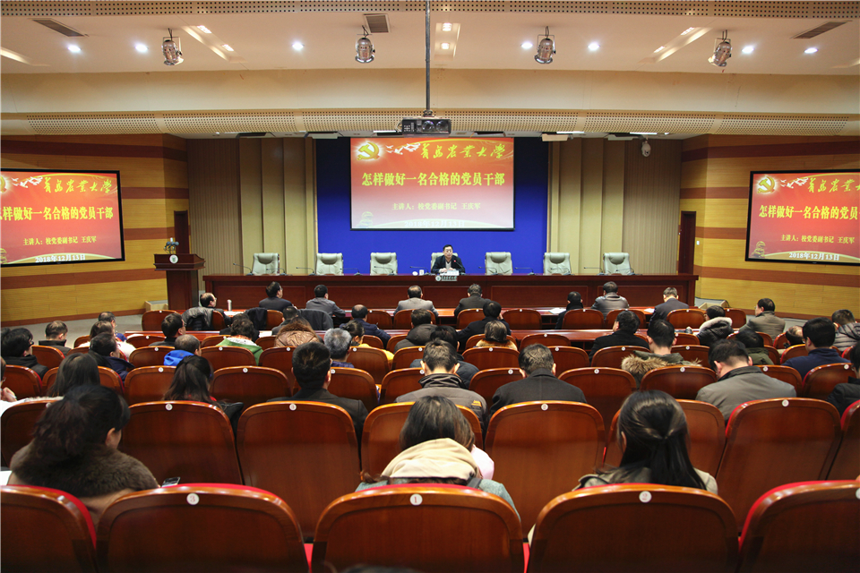 12月13日下午,校党委副书记王庆军以“怎样做好一名合格的党员干部”为题,就如何更好发挥党员干部先锋模范作用,进一步激发广大教职员工干事创业热情,切实为学校改革发展做出新的贡献,为分管单位全体党员干部做了一场专题辅导报告。