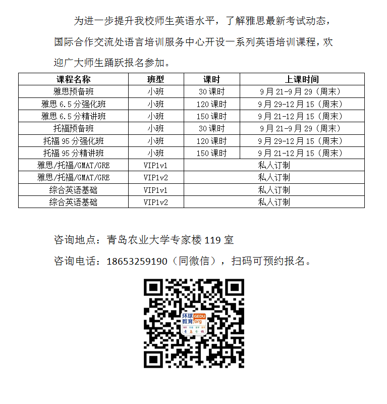 关于雅思开班计划的通知