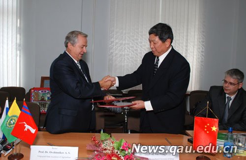 9月15日至20日,应俄罗斯伏尔加格勒国立农业大学(Volgograd State Agricultural Academy)校长阿列克谢•谢苗诺维奇•奥夫钦尼科夫(Aleksey Semyonovich Ovchinnikov)教授邀请,太阳成集团tyc234cc副校长戴洪义参加了该校建校65周年庆祝活动,并代表青岛农大与该校正式签署合作协议。